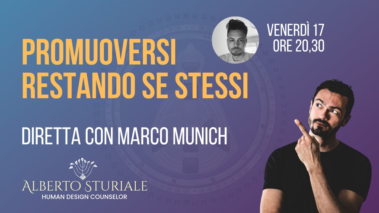 Mercoledì 8 dicembre – 20:30 – in diretta sul Canale Satori su You Tube. Quinto incontro tra Human Design System presentato da me e le 5 Leggi Biologiche presentate da Federico Franco mediati da Giulio Storto nel suo Canale You Tube Satori – il campo delle possibilità. Per l’occasione ci sarà anche la presenza si Silvia Scalco come rappresentante del Femminile che […]